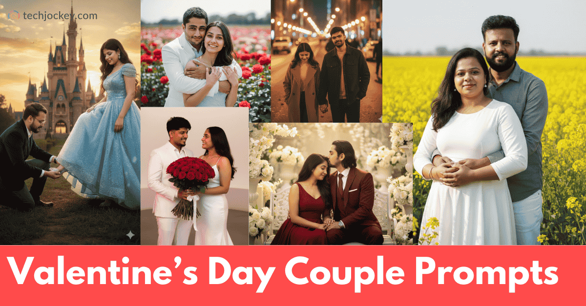 If you love magical fairytale themes, this is one of the most enchanting Valentine’s Day couple AI prompts you can try.
