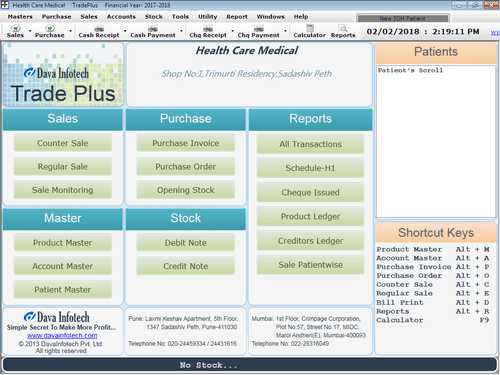 Dava TradePlus is a pharmacy management software that provides complete control of operations and assists in the improvement of the workflow. The software aids pharmacists to overcome all the hassling paperwork and saves all the data in the system. Users can automate various workflows such as billing, invoicing, and inventory. Dava TradePlus does GST compliant billing and invoicing. This pharmacy management software assists in calculating taxes of the pharmacy store by automatically taking account of all the expenses and transactions in a financial year.