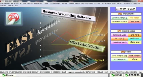 भारतीय स्टाइल के इस एकाउंटिंग सॉफ्टवेयर की मदद से आप 5 मिनट में रोकड़ पाना छाप सकते है, बिलिंग कर सकते है, तकादा /फरदी लिस्ट निकाल सकते है, होलायती व् उच्चंती, गोदाम वार स्टॉक आदि का हिसाब रख सकते है और GST Return भी लगा सकते है.
