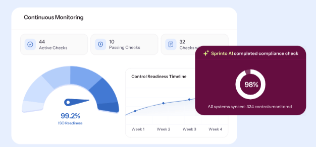 SprintoAI-native continuous compliance at scale200+ frameworks including SOC 2, ISO, GDPROn request