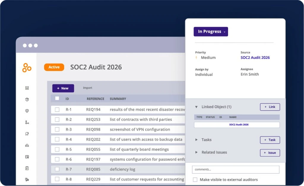 • You can connect audit requests directly to controls and evidence, making audits faster and more organized.