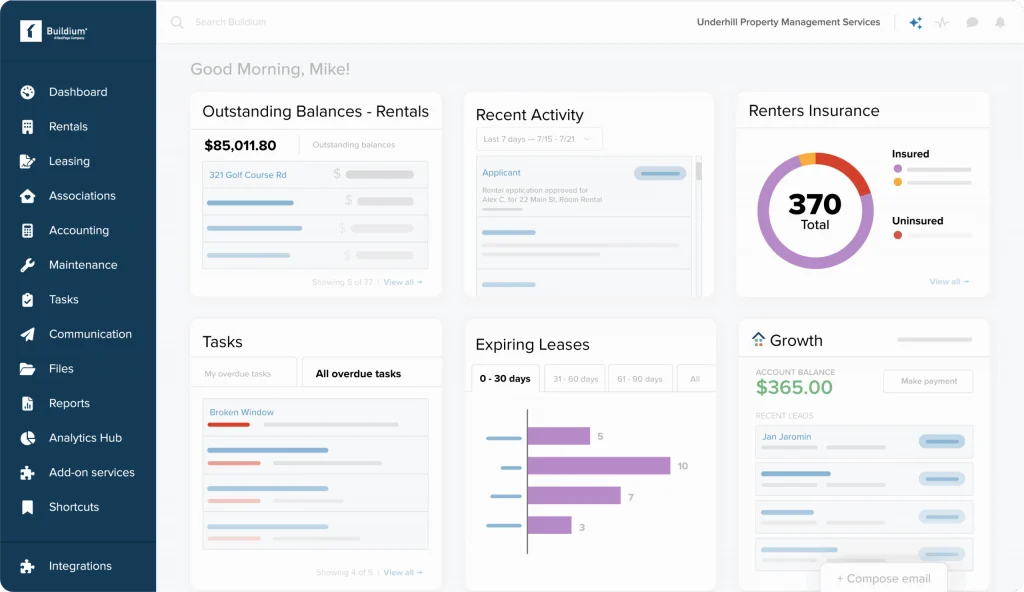This platform lets you manage communication with residents, owners, and vendors through a unified inbox with email and SMS templates.
